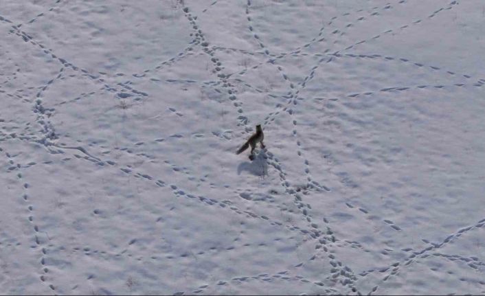 Van’da yiyecek arayan tilkilerin kar altındaki fareyi avladığı anlar kameraya yansıdı.