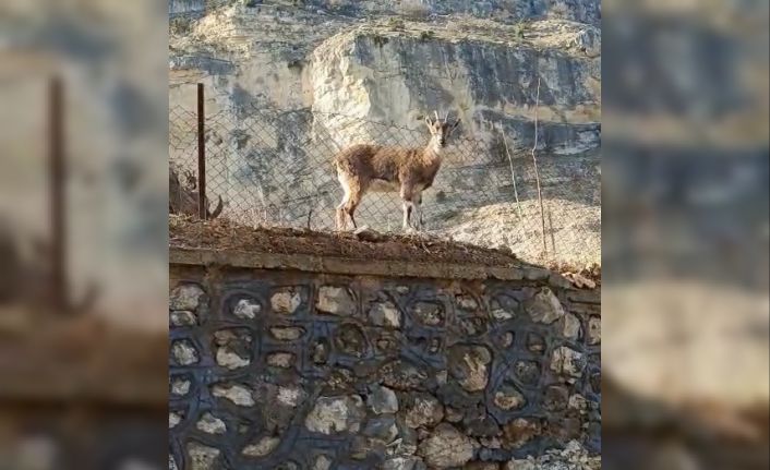 Tunceli’nin Çemişgezek ilçesinde bir vatandaşın, anayola inen yaban keçileri ile diyaloğu tebessüm ettirdi.