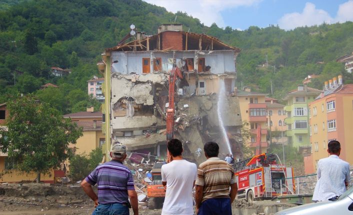 Batı Karadeniz bölgesinde 11 Ağustos tarihinde meydana gelen sel felaketi sonrasında Kastamonu’nun Bozkurt ilçesinde bir çok ev ve iş yeri zarar gördü. Yapılan incelemelerle birlikte selden zarar gören 5 katlı Yıldız Apartmanı için yıkım kararı alındı. Alınan kararla birlikte vatandaşlar, kurtarabildikleri eşyaları sırtlarına yükleyerek yıllarca yaşadıkları binayı terk etmek zorunda kaldı. Yıldız Apartmanının yıkım çalışmaları ise bugün sabah saatlerinde başladı. İş makinesiyle yıkımı gerçekleştirilen binayı, çevredeki vatandaşlar çaresiz gözlerle izledi. Bazı vatandaşlar ise o anları cep telefonu kamerasıyla kaydetti.