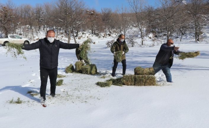 Hayvanların aç kalmaması için yem bırakma çalışmalarını aralıklarla sürdürdüklerini belirten İl Tarım ve Orman Müdürü Bülent Saklav, “Bakanımız Sayın Bekir Pakdemirli’nin ve Sayın Valimiz Hamza Aydoğdu’nun talimatları doğrultusunda İl Tarım ve Orman Müdürlüğümüz ve Doğa Koruma ve Milli Parklar Şube Müdürlüğümüz ile birlikte ilimizde kar yağışından sonra yaban hayatındaki hayvanların aç kalmaması için yem bırakıyoruz. Bugün Hasandağı’ndayız. Ekecik Dağı’na da bıraktık. Mütemadiyen belirli aralıklarla bırakarak yaban hayatını besliyoruz. Yaşayan her canlıya merhamet etmek gerekiyor. İnsanlığı da merhametin ayakta tuttuğunu düşündüğümüz için hem talimatlar doğrultusunda hem de görevimiz gereği yaban hayatını şu anda besliyoruz. İnşallah bunlara da devam edeceğiz. Bıraktığımız şeyler arasında buğday var, yeşillik var, sakatat gibi birçok yem bırakıyoruz. Yaban hayatını bu şekilde besliyoruz” dedi.