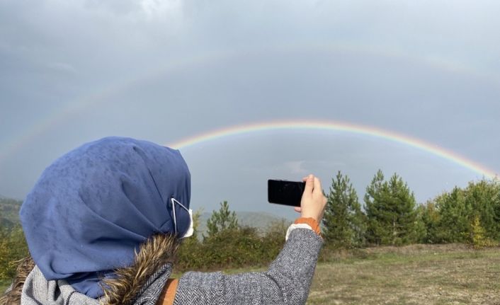Bartın’da yağmurun ardından çifte gökkuşağı ortaya çıktı. Ender oluşan çifte gökkuşağını gören vatandaşlar, gökkuşağını cep telefonları ile fotoğrafladı.