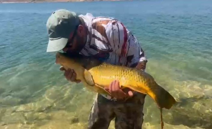 Elazığ’da amatör olta balıkçılarından Murat Şimşek’in oltasına Keban Barajı’nda yaklaşık 15 kiloluk sazan balığı takıldı. Dev sazan balığını oltayla kıyıya getiren Murat Şimşek ve arkadaşları balığın anaç bir balık olduğunu fark etti. Murat Şimşek bunun üzerine kucağına aldığı balığı öperek daha sonra suya tekrar bıraktı.