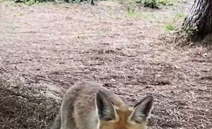 Yalova’daki bir mesire alanında piknik yapan vatandaşlar, yanı başlarına kadar gelen aç tilkiyi elleriyle besledi.