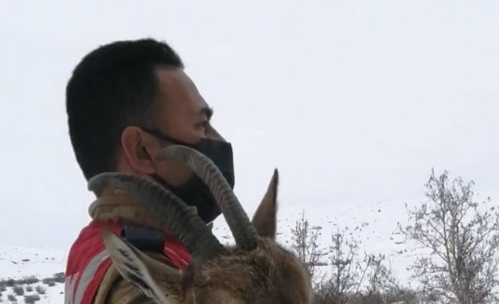 Tunceli’de jandarma ekipleri tarafından dağdan indirilen yaralı yavru dağ keçisi koruma altına alındı.