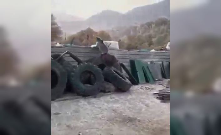 Tornacı Müslüm Seyrek’in işyerine giren yavru ayıları Salih Zeki Çetinkaya cep telefonu ile görüntüledi.
