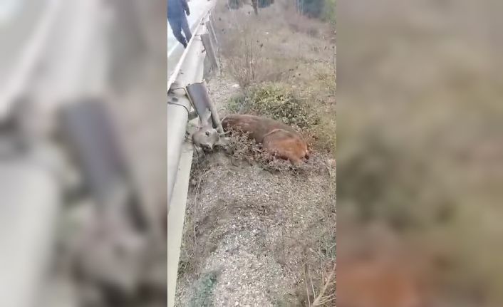 Karabük’ün Safranbolu ilçesini Eflani ilçesine bağlayan yolun Kırıklar mevkiinde ise göreve giden orman muhafaza memuru, yol kenarındaki demir bariyerlere başı sıkışan karacayı gördü. Orman muhafaza memuru, karacanın başını sıkıştığı yerden kurtardı. Karaca bir süre sonra ayağa kalkıp ormanlık alana koşarak gözlerden kayboldu. O anlar ise bir vatandaşın cep telefonu kamerasıyla görüntülendi.