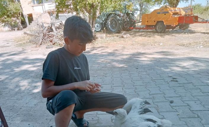 Tunceli’nin Çemişgezek ilçesinde yaşayan 12 yaşındaki Furkan Reis Güler, yavru leyleği elleriyle besliyor.