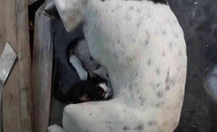 Tunceli’nin Çemişgezek ilçesinde bir sokak köpeği, öksüz kalan kediye annelik yapmaya başladı. Kedi ile köpeğin iç içe olduğu görüntüler, görenlerin içini ısıttı.