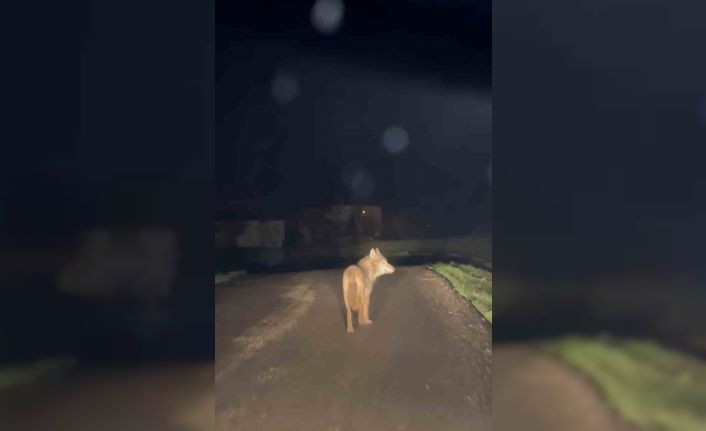 Vatandaş o anları cep telefonu kamerasıyla görüntüledi. Görüntülerde bir süre yol boyunca ilerleyen kurt daha sonra gözden kayboldu.