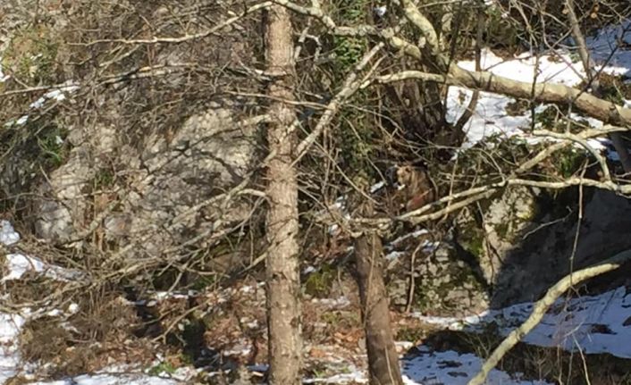 Ulus’un Ulukaya köyündeki Ulukaya şelalesi yakınlarında yiyecek arayan boz ayının görüntüleri vatandaşlar tarafından cep telefonu ile saniye saniye kaydedildi.