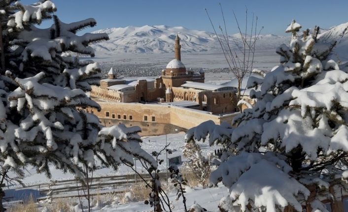 Kar yağışının ardından sarayın avlusu, taş duvarları ve çevresindeki tarihi dokular tamamen karla kaplanırken, oluşan manzara görenleri hayran bıraktı. Doğubayazıt’ın simgelerinden biri olan İshak Paşa Sarayı, karın etkisiyle kartpostallık görüntüler sunarak ziyaretçilerin ve fotoğraf tutkunlarının ilgisini çekti.