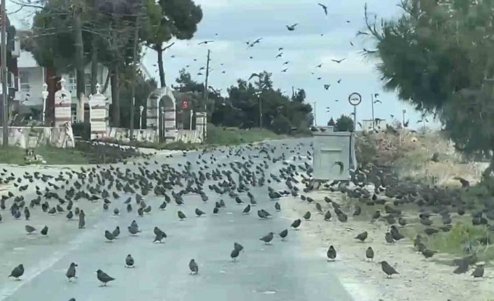 Tekirdağ’ın Şarköy ilçesinde, Marmara Denizi’ne sıfır konumda bulunan sahil yolunda binlerce sığırcık yolu tamamen kapattı. Kuşlar yüzünden sürücüler ilerlemekte büyük güçlük çekti.