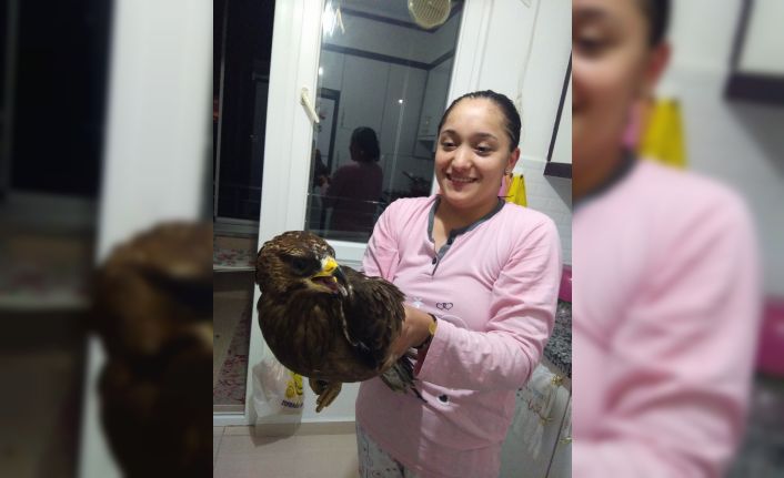 Yolu şaşıran şahin eve daldı
