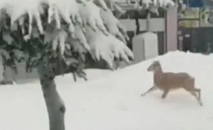 İlçe merkezindeki Seyitaliler Mahallesi’nde kaydedilen görüntüde, bir yaban keçisinin, karla kaplı caddeden koşarak ve zıplayarak geçtiği görülüyor. Yaban keçisi, bir süre etrafına bakındıktan sonra evlerin arasından geçerek yaşam alanı olan dağlık kesimlere doğru gözlerden kayboldu.