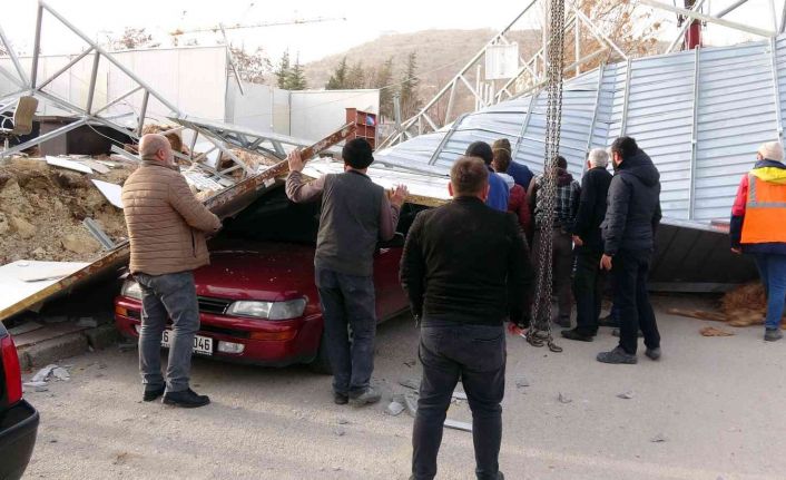 Yozgat’ta şiddetli rüzgar ve fırtına nedeniyle bir inşaat şantiye binasının çatısı uçtu. Çatıdan kopan parçalar, iki araçta maddi hasar oluştururken rüzgar nedeniyle bir binanın da çatı katı uçtu.