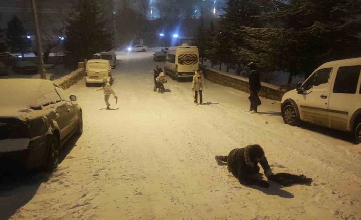 Yozgat’ta akşam saatlerinde etkili olan kar yağışı, cadde ve sokakları adeta kayak pistine çevirdi. Uzun süredir kar yağışını bekleyen çocuklar ve aileleri, tepsi, naylon poşet ve tahta kızaklarla yokuşlara akın ederek karın keyfini doyasıya yaşadı.