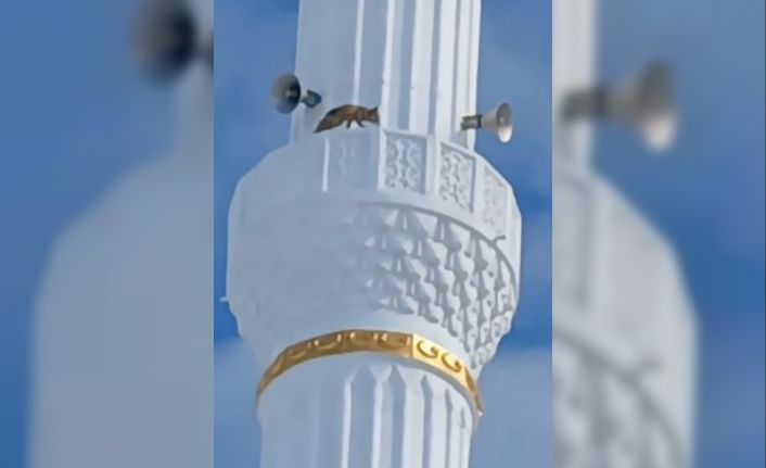 Yozgat’ta minareye çıkan tilki hayrete düşürdü