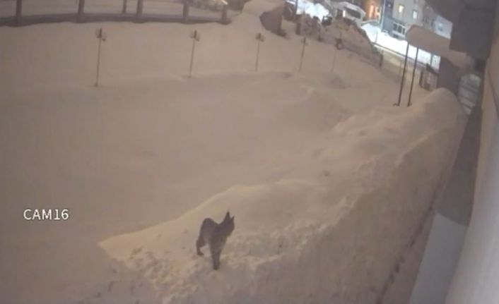 İpekyolu Caddesi üzerinde faaliyet gösteren bir düğün salonunun bahçesine gece saatlerinde giren vaşak, karla kaplı alanda bir süre yiyecek aradı. Çevrede kimsenin olmadığı sırada bahçede gezinen yabani hayvanın o anları, saniye saniye güvenlik kamerasına yansıdı.