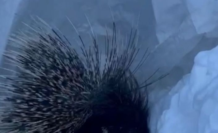 Hakkari’nin Yüksekova ilçesinde nesli tükenme tehlikesi altında olan Hint oklu kirpi görüntülendi.