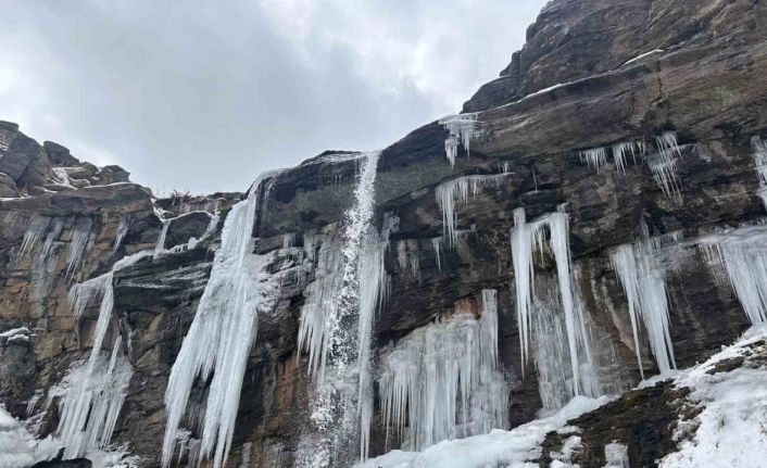 Yüksekova’nın 4 bin 135 rakımlı Cilo Dağı eteklerinde yer alan Orşe Vadisi’nde yer alan şelalesi dondurucu soğukların etkisiyle oluşan buz sarkıtları görsel şölen sundu. Cilo dağın içinde yer alan Orşe Vadisi el değmemiş yapısıyla görenleri adeta büyülüyor. Doğa sever Ahmet Güldal, her hafta olduğu gibi bu hafta da ilçenin muhteşem bölgesi olan Cilonun Orşe Vadisi ve kervan gölünü ziyaret etti. Bölgeyi gezdiği sırada Orşe şelalesinin sonduğunu gören Güldal, bu doğa güzelliğini görmeyi herkese tavsiye ettiğini belirtti. Dondurucu soğuklar nedeniyle buz sarkıtların yaklaşık 4 metreyi bulduğu ifade eden Ahmet Güldal, “Bugün Orşe Vadisi’ndeki Orşe şelalesini ziyaret ettim. Şuan şelale tamamen donmuş ve buz sarkıtları oluşmuş durumda. Nereden bakarsan 4 metreyi buluyor. Muazzam bir manzarası var. Doğasıyla adeta insanı büyülüyor. Bizde bu güzel görüntüleri bir bir kayıt altına aldık” dedi.