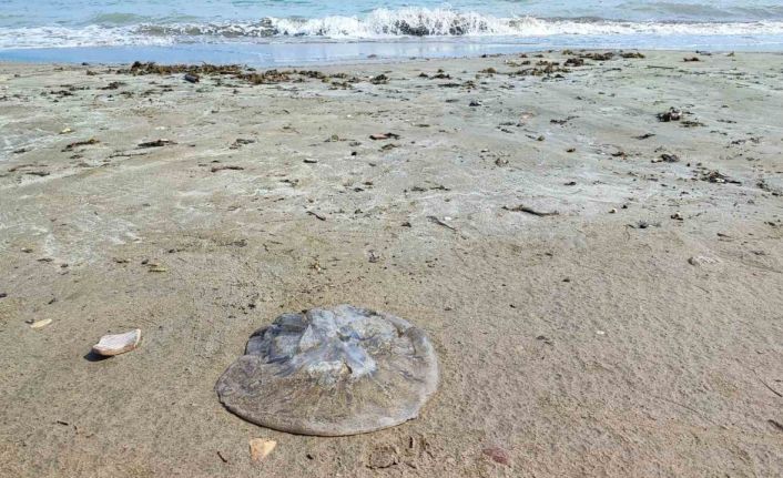 Adana’nın Yumurtalık ilçesinde sahil şeridi denizanalarıyla kaplandı. Onlarca denizanasının kıyıya vurduğu bölgede, deniz kenarı adeta denizanalarından geçilmez hale geldi.