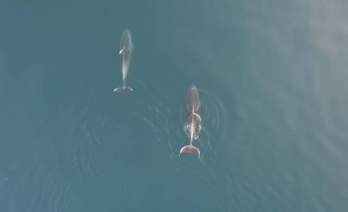 Kocaeli’nin turizm destinasyonları arasında yer alan Kandıra Kefken’de yunuslar görüntülendi. Renkli görüntüler oluşturan iki yunus, yaklaşık 1 dakika yüzeyde kaldıktan sonra gözden kayboldu. Yunusların keyifli yolculuğu, dron ile görüntülendi.