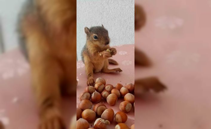 Yuvasından düşerek kafa travması yaşayan yavru sincap 3 hafta önce koruma altına alındı. Sağlığı iyi durumda olan sincap, önümüzdeki günlerde doğaya salınacak.