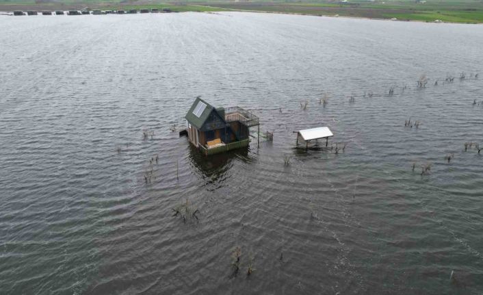 Yüzen evler...Ulubat Gölü taştı, felaket havadan görüntülendi