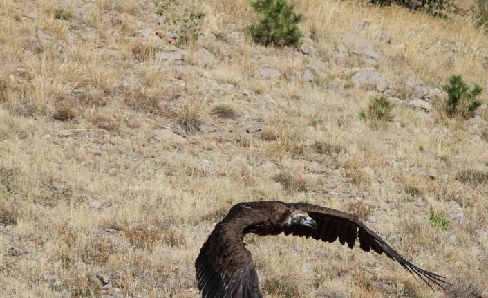 Ankara’nın Beypazarı ilçesinde zirai ilaçlama nedeni ile zehirlenen kara akbaba, Soğuksu Milli Parkı’nda doğaya salındı.