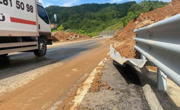 Zonguldak-İstanbul karayolu Elmacı mevkisinde yaşanan heyelan sonrası ulaşım tek şeritten sağlanıyor.