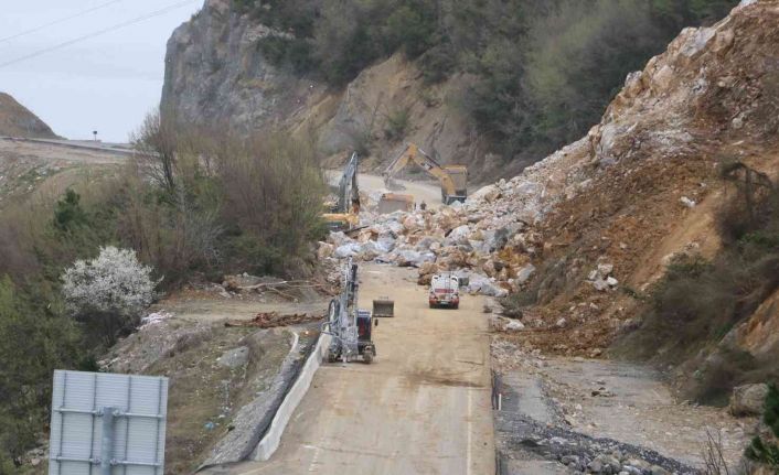 Zonguldak-İstanbul karayolunda meydana gelen heyelanı kaldırma çalışmaları sürüyor.