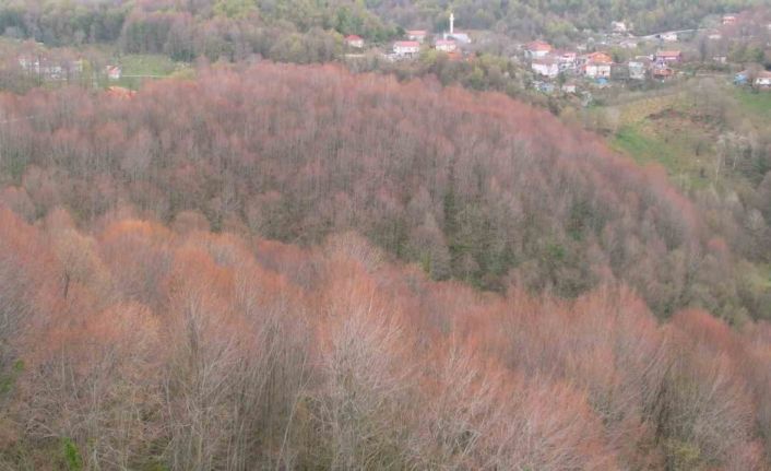 Zonguldak’ta kırmızıdan yeşile dönen ormanın renkleri ilkbaharı karşılamaya başladı.