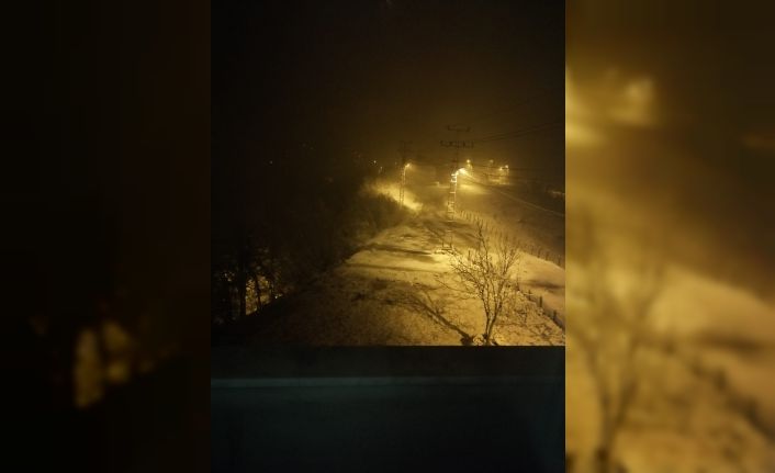 Zonguldak’ın Elvanpazarcık beldesi akşam saatlerinde yağan kar yağışı sonrası beyaza büründü.
