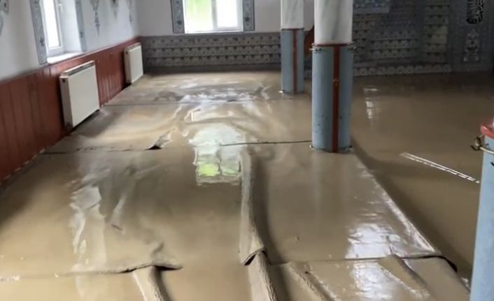 Zonguldak’ın Beycuma beldesinde şiddetli yağışlar sonucu cami sular altında kaldı.