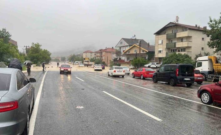 Zonguldak’ın Devrek ilçesinde sağanak yağış sonrası karayolunda taşkın medyana geldi.