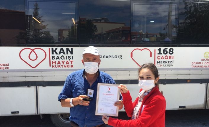 Çorum’un Sungurlu ilçesinde Türk Kızılayı rekor sürede bağış yapan vatandaşa altın madalya ile ödüllendirdi.