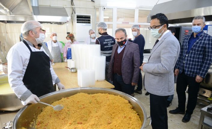 Sosyal Yardımlaşma ve Dayanışma Vakfı Müdürü Zekeriya Doğan ile aşevini ziyaret eden Çorum Belediye Başkan Yardımcısı Turhan Candan yapılan hizmet ve çalışmalar hakkında bilgiler alarak ihtiyaç sahiplerine ulaştırılmak için hazırlanan yemekleri inceledi.
