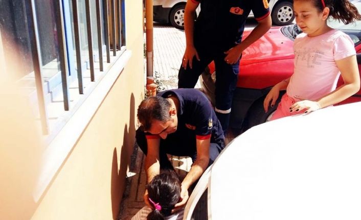 Ayağını mazgala sıkıştıran Masal’ı itfaiye kurtardı