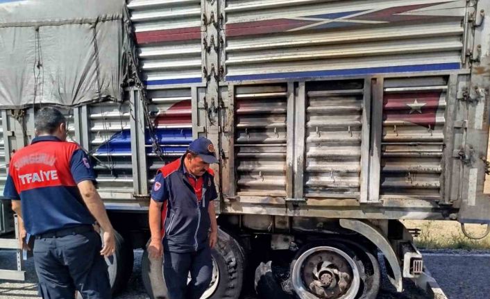 Balataları tutuşan tırın küle dönmesini itfaiye önledi