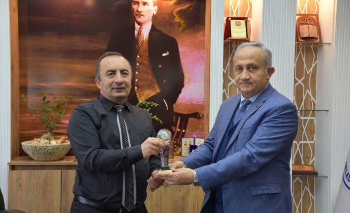 Başkan Ali Sülük’e Mahmetçik Vakfı’nın çalışmaları hakkında bilgi veren Kabakçı, daha sonra teşekkür plaketi takdim etti.