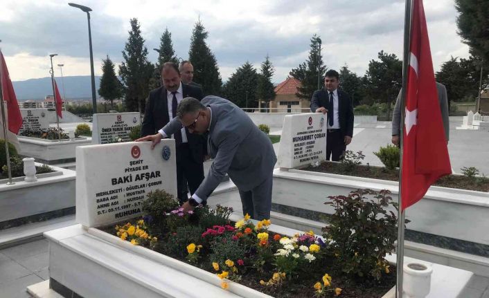 Bayramlaşma programının ardından AK partililer Çorum şehitliğini ziyaret ettiler. Ziyaret sonrası basın mensuplarına bir açıklama yapan AK Parti Çorum İl Başkanı Yusuf Ahlatcı, "Vatanseverlikleriyle övündüğümüz, unutulmaz hizmetleriyle örnek aldığımız gazilerimiz ve şehitlik mertebesine ulaşmış tüm vatan evlatlarına karşı yapılacak en anlamlı teşekkür, onların bizlere emaneti olan bu cennet vatanı korumak, milli birlik ve beraberliğimizden taviz vermeden sahip çıkmak ve güçlü Türkiye yolunda emin adımlarla ilerlemektir. Ülkemizin bağımsızlığı, vatanının bölünmez bütünlüğü, milli birlik ve beraberliğimizin korunması uğruna göğsünü siper etmiş ve bunun nişanını gururla taşıyan şehit ve gazilerimizin kahramanlıkları hafızalarımızdan silinmeyecek ve hiçbir zaman unutulmayacaktır. Bizler de görevimizi yaparken onlara layık olmaya çalışıyoruz ve her zaman sizlerin yanınızdayız. Ülkemizin bağımsızlığı ve bütünlüğü uğruna, canlarını hiçe sayarak ölüme koşan, dünyanın dört bir yanında ve yurdumuzun her köşesindeki şehitliklerde "kefensiz ama görevini yapmış olmanın huzuru içinde yatan” kahraman şehitlerimizi minnet ve şükranla anıyor aziz hatıraları önünde saygıyla eğiliyorum” ifadelerini kullandı.
