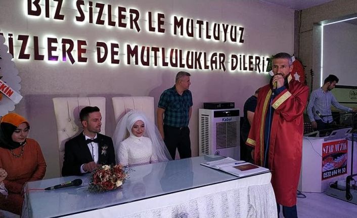Çorum’un Sungurlu Belediyesi nikah memuru Seyfettin Alkan, oğlu Kaan ile gelini Merve’nin nikahını kıydı.