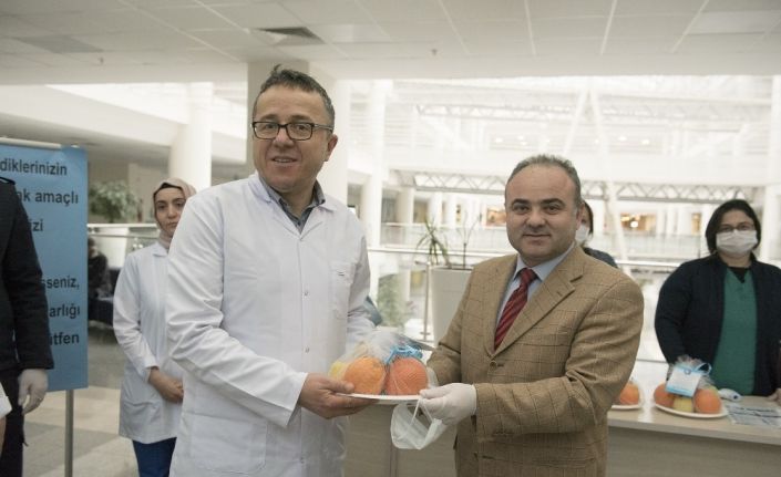 Çorum Belediyesi, Hitit Üniversitesi Erol Olçok Eğitim ve Araştırma Hastanesi’ndeki sağlık görevlilerine meyve ikramında bulundu.