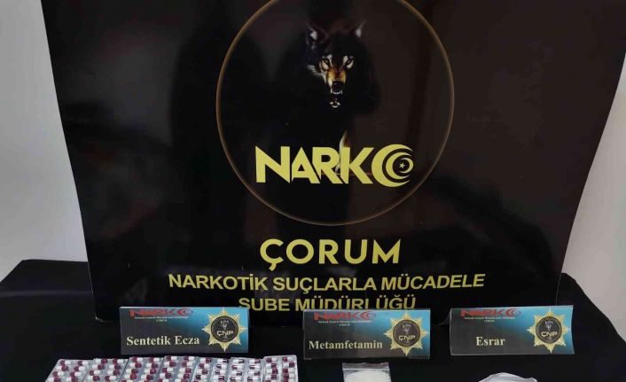Çorum polisi tarafından zehir tacirlerine yönelik düzenlenen uyuşturucu operasyonunda 23,12 gram metamfetamin maddesi ile 166 adet sentetik ecza maddesi ele geçirildi.