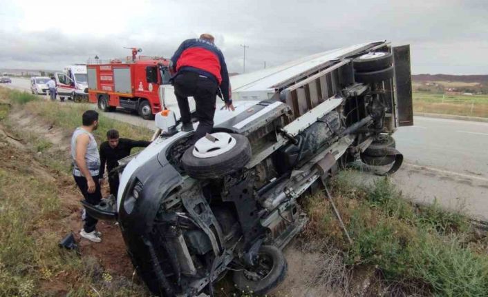 Çorum’da devrilen kamyonetin sürücüsü yaralandı