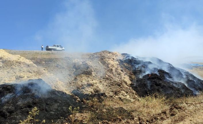 Çorum’un Alaca ilçesinde çıkan yangında tonlarca saman kül oldu.