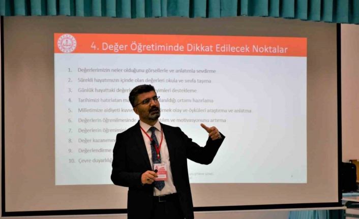 Çorum’da Milli Eğitim Bakanlığı öncülüğünde düzenlenen seminerde "Erdem, Değer, Eylem" temelli yeni eğitim yaklaşımı Çorum’da düzenlenen seminerle öğretmen ve yöneticilere anlatıldı.