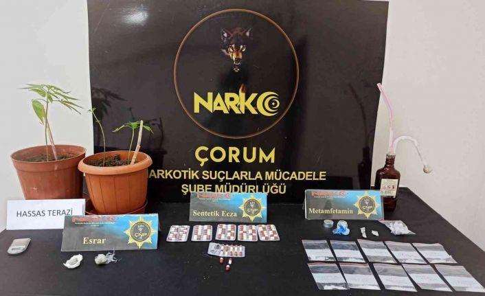 Operasyonda 83 adet sentetik ecza, 1,15 gram esrar maddesi, 1 adet uyuşturucu madde kullanma aparatı, 6,60 gram metamfetamin maddesi, 3 kök hint keneviri bitkisi ele geçirildi.