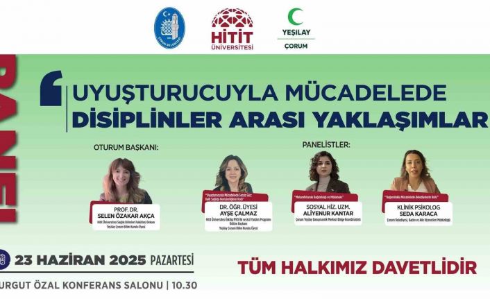 Çorum Belediyesi, Hitit Üniversitesi ve Yeşilay Çorum Şubesi iş birliğinde uyuşturucu ile mücadele konulu panel düzenlenecek.
