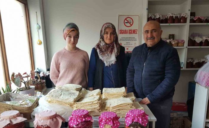 Çorum’un Bayat ilçesinde ev hanımları deprem bölgesindeki vatandaşlar için imece usulü yufka ekmek ve bazlama üretimine başladı.